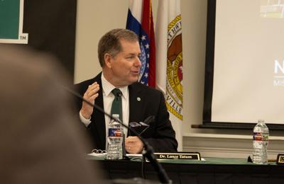 Northwest President Lance Tatum gives his president's report at the conclusion of the Dec. 11 Board of Regents meeting. A major agenda item at this meeting was the Alcohol on University Property Policy to allow alcohol to be sold at campus athletic events.
